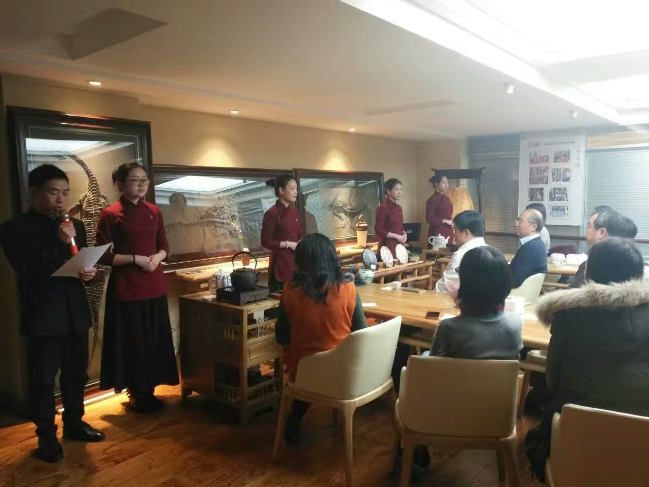 1月11日晚间,湖北省茶艺与茶文化“双师型”教师培训班赴武汉普洱藏家汉阳沌口店进行参观学习。作为一家专业的普洱茶公司,普洱藏家不仅收藏经营普洱茶,进行普洱茶文化的推广和传播工作。沌口店的装修古色古香,除了有各色名优普洱老茶之外,普洱藏家的藏品还有各种经典茶具,其中包括宋代至清代的官窑瓷器和日本的各色老铁壶。店内各色茶席古朴优美,“双师班”的学员大开眼界。普洱藏家董事长鲁文峰先生和“双师班”的学员们进行了交流,为学员传授普洱茶知识。鲁董向学员们介绍了普洱茶的“四大价值”、“三个阶段”,传授冲泡普洱茶的技巧和储存普洱茶的方法,并且热情的拿出经典的茶品供学员品尝体悟。在此就业和实习的武交院学生们进行了精彩的茶艺演示。