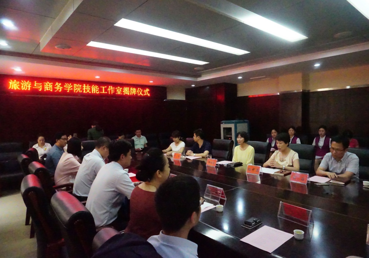 6月22日,旅游与商务学院技能工作室揭牌仪式在行政楼2号会议室举行。副校长姬中英、教务处处长刘浩、合作交流处副处长李繁、旅商学院领导及工作室师生代表参加了揭牌仪式,会议由旅商学院副院长廖莎主持。
