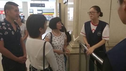 7月7日上午,旅商学院院长鄢向荣、副院长尚洁、高铁教研室王文力老师、办公室主任肖路一行来到汉口火车站看望我院暑期在此志愿服务的29名学生。