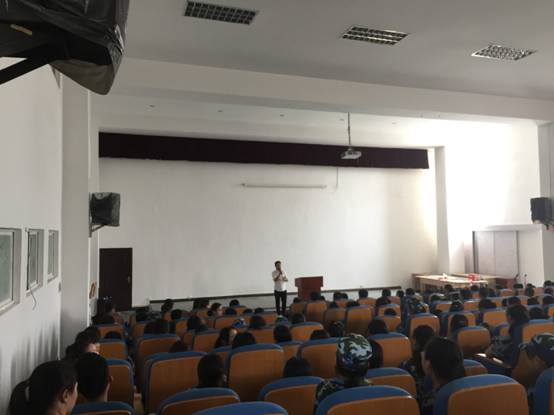 2010级优秀毕业生刘启云以游戏互动“教官说”开场,向在场的学弟学妹们分享自己在校时参加军训深刻难忘的回忆。她希望同学们积极参加学校学院各项活动,磨练自己的意志力、提升综合素质。她告诫学弟学妹们,在享受大学生活的同时不能忘记学生的本分,多学知识多考专业证书充实自我,为进入社会打下坚实的基础。