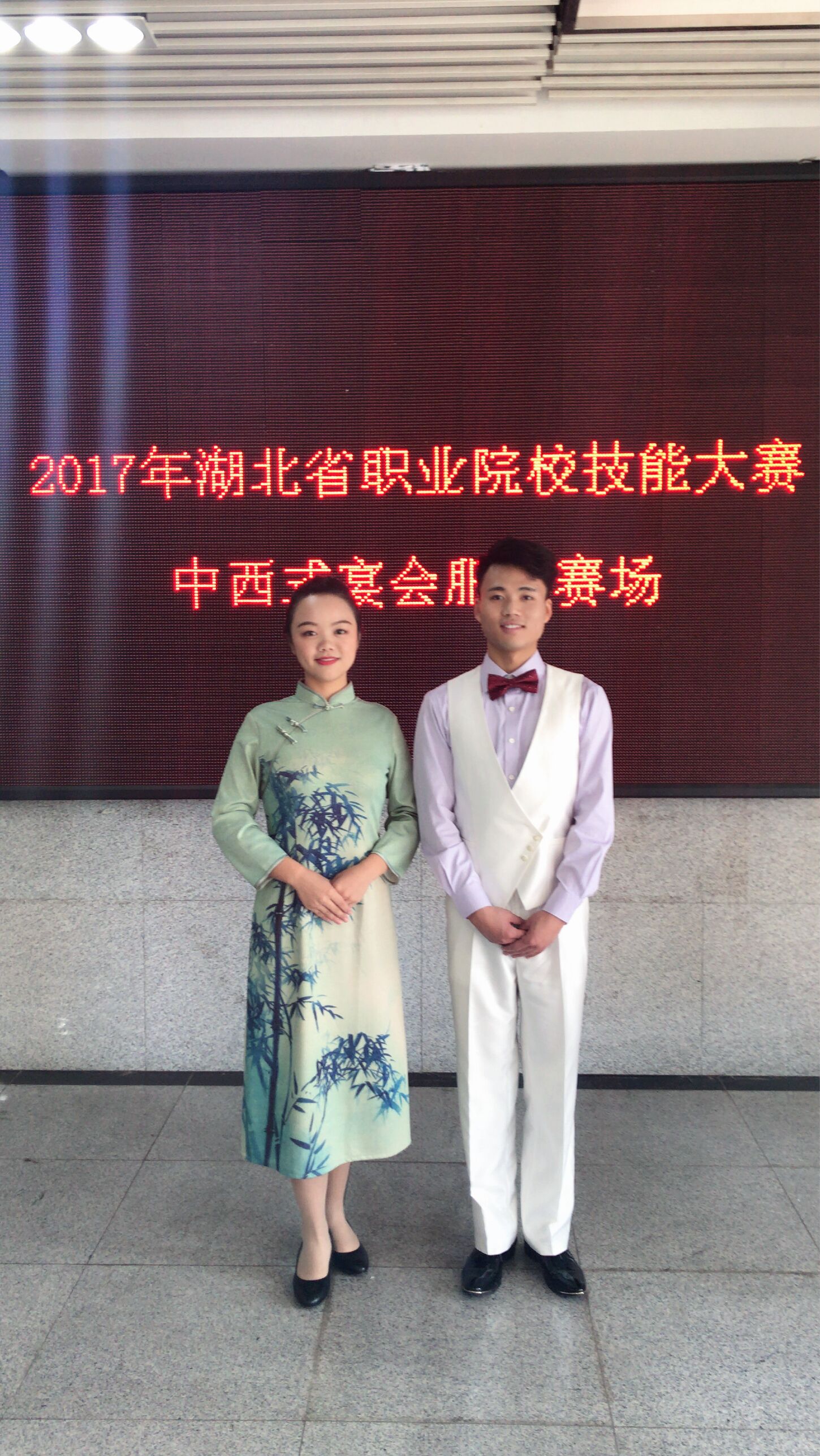11月3日至5日,由湖北省教育厅主办、湖北省教育科学研究院承办的“2017年湖北省职业院校技能大赛中西式宴会服务大赛”在武汉职业技术学院顺利举办,共有35所高职院校的70名参赛选手参赛。经过两天紧张激烈的比拼,我校2016级酒店与邮轮专业崔传喜、许菲两名同学荣获二等奖。