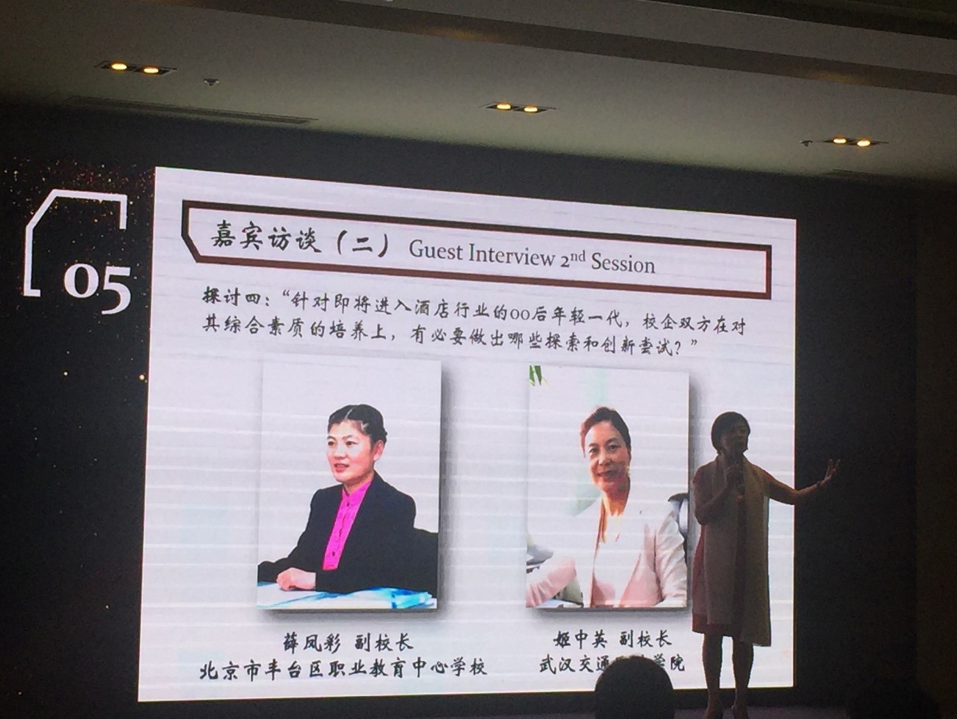 应会议主办方邀请,副校长姬中英在“协同合作,提升酒店教育”分论坛接受了嘉宾访谈并发表专题演讲,结合我校酒店管理专业建设的实际情况,从四个方面阐释了我校酒店管理专业在校企合作中对新生代学生综合素质的培养开发的创新实践探索方法,得到了与会各院校和酒店企业的充分认同。