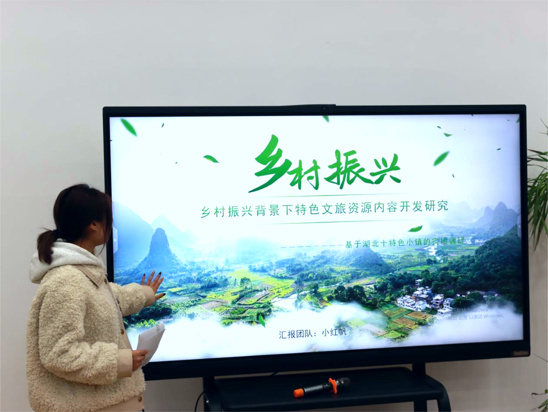小红帆代表陈琳琳同学根据我国乡村发展现状对乡村背景下旅游文化资源并结合湖北农旅产业特点进行了考察研究,并提出:“乡村振兴是学校发展的内生需求,是学校发挥专业优势培养人才科学研究服务社会和助兴乡村振兴的重要载体。”