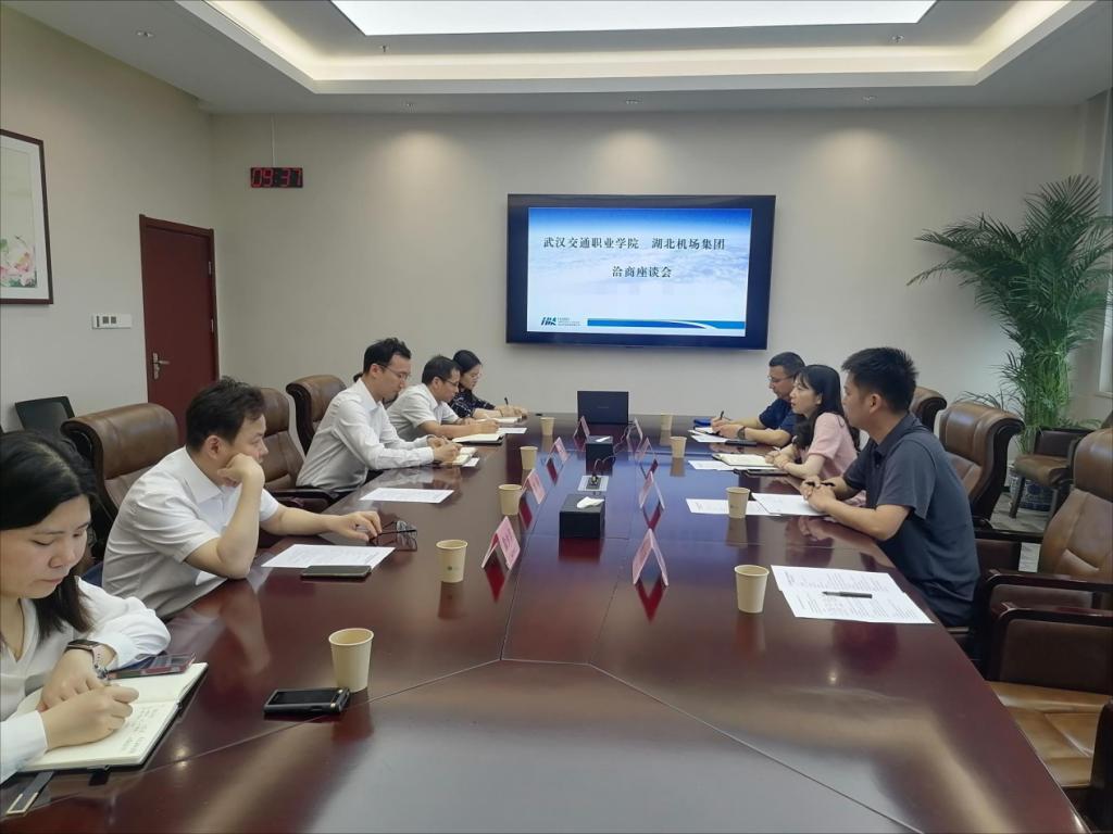 湖北垄上航空地面服务有限公司经理刘维康对我校领导教师们的到访表示热烈欢迎。他详细介绍了湖北垄上航空地面服务有限公司的发展历程和"十四五"发展规划,特别是在智慧机场、绿色机场建设等方面的创新举措,同时感谢学校为企业输送了大量高素质技术技能人才。交通文旅学院院长介绍了学校的发展近况和交通文旅学院的专业建设情况,高度评价了湖北垄上航空地面服务有限公司作为"全国文明单位"的行业引领作用,希望双方以此次调研为契机,深化产教融合,在专业共建、课程开发、实训基地建设等方面开展深度合作。