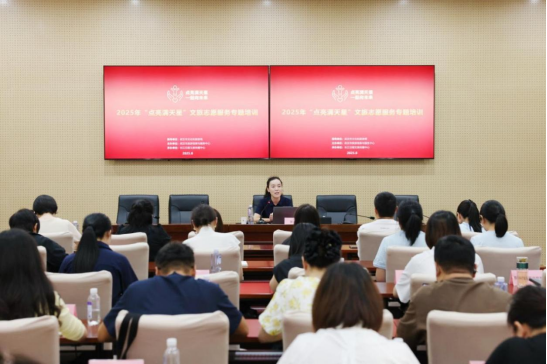 8月27日,2025年“点亮满天星”文旅志愿服务专题培训在武汉市文化和旅游局举行,来自各区文旅局及全市优秀文旅志愿服务组织的60余人齐聚一堂“充电蓄能”,其中我校小红帆志愿服务队指导老师李勤和赵静两位老师受邀参加,武汉市“点亮满天星·一起向未来”2025年度文旅志愿服务深化培育活动也由此拉开帷幕。